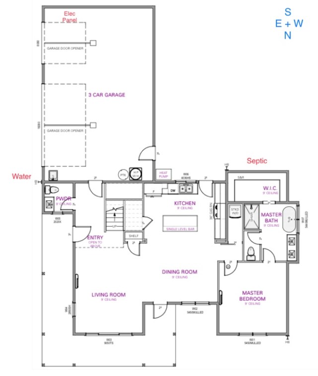 Foundation was staked out today. I also had to make a decision on where the utilities would be stubbed in on the house (septic, electrical and water). Power and Water are on the Northeast corner of the lot. All electric is underground so that will be the longest run.